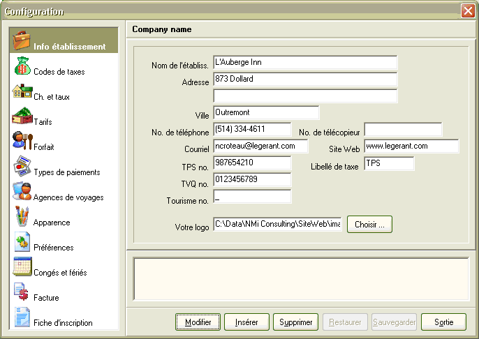 Bienvenue à ce quatrième bulletin d'information destiné aux utilisateurs du logiciel Le Gérant. Ce bulletin vous présente les améliorations et fonctions qui ont été ajoutées au logiciel depuis le dernier bulletin (Vol. 3). Dans cette version, nous avons amélioré les fonctions de configuration, de composition de la facture, et nous offrons maintenant les réservations par forfait. Nous avons également apporté un correctif important dans le calcul de la taxe d'hébergement, pour se conformer aux directives du Ministère du Revenu du Québec. Certains correctifs mineurs, ont aussi été apportés. Ces fonctions ne sont pas documentées dans le manuel, celui-ci sera mis à jour dans une version ultérieure. Le produit est en constante évolution et c'est en grande partie grâce à vos commentaires et suggestions que cette évolution est possible. Bonne mise à jour !